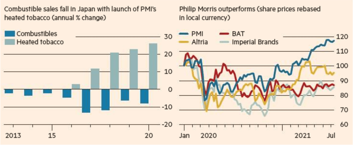 “(필립모리스는) 지난 해 매출의 거의 1/4을…저위험상품군 (HNB 등)에서 달성”하였고, “...필립모리스는 다른 동종업체보다도 높은 P/E 배수를 유지하고 있다… 투자가들은 자신들의 필립모리스의 대한 믿음을 높은 주가로 보여주고 있다”